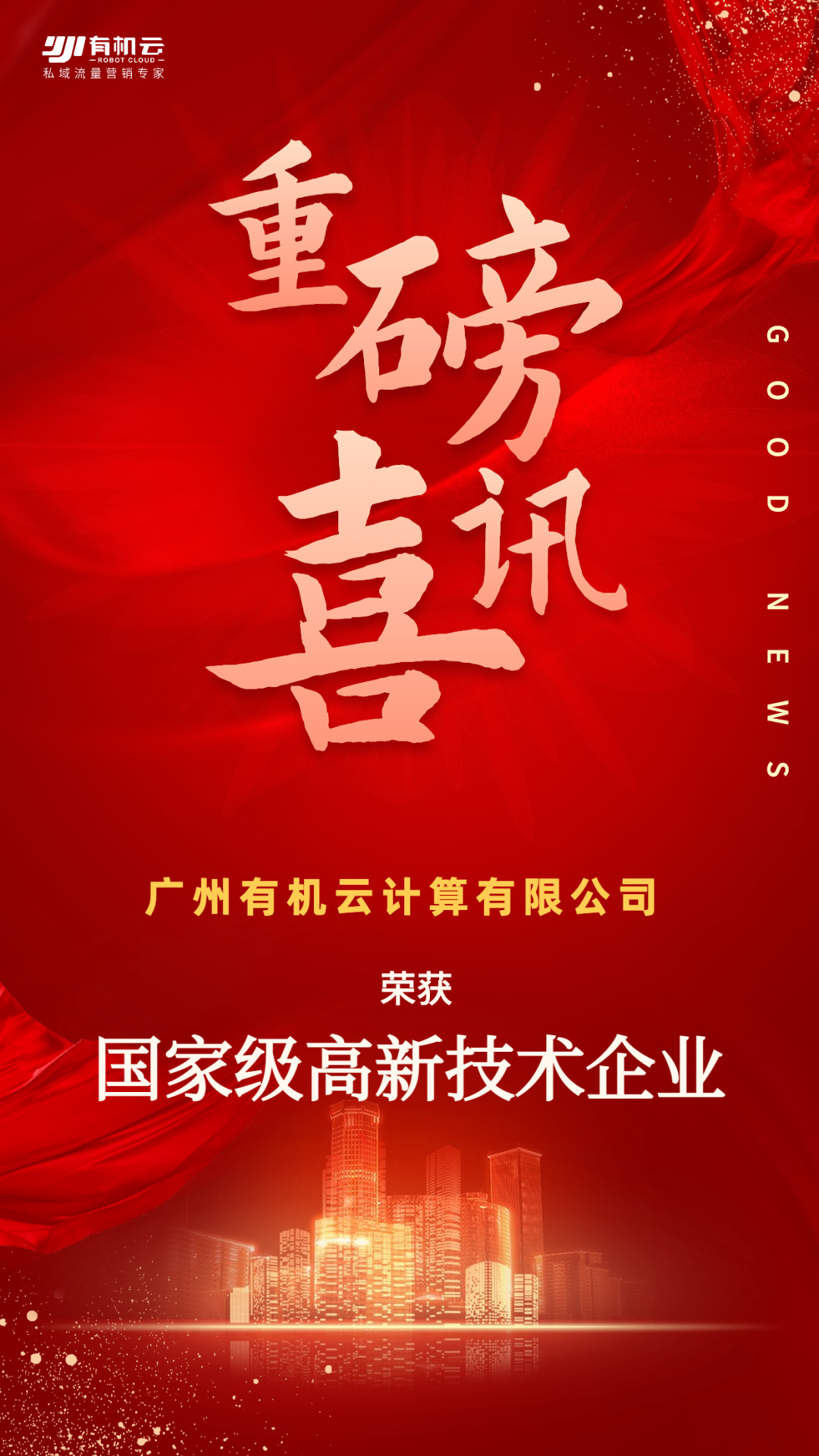 喜讯!有机云获「国家高新技术企业」称号!
