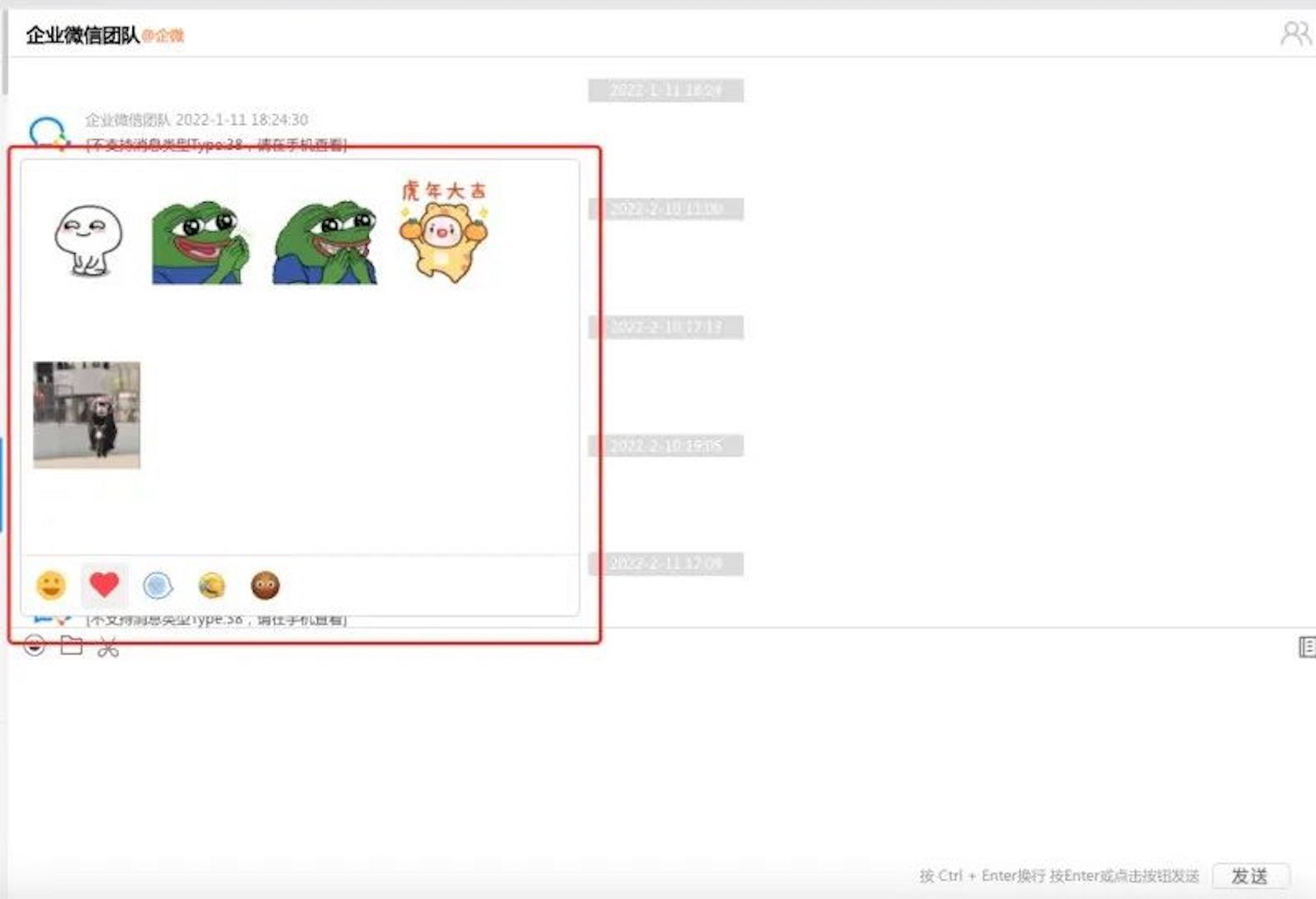 企微工作台新增【自定义表情包】功能,支持在聊天中收藏、发送自定义表情包,且手机端收藏的表情包可同步到PC端工作台中。