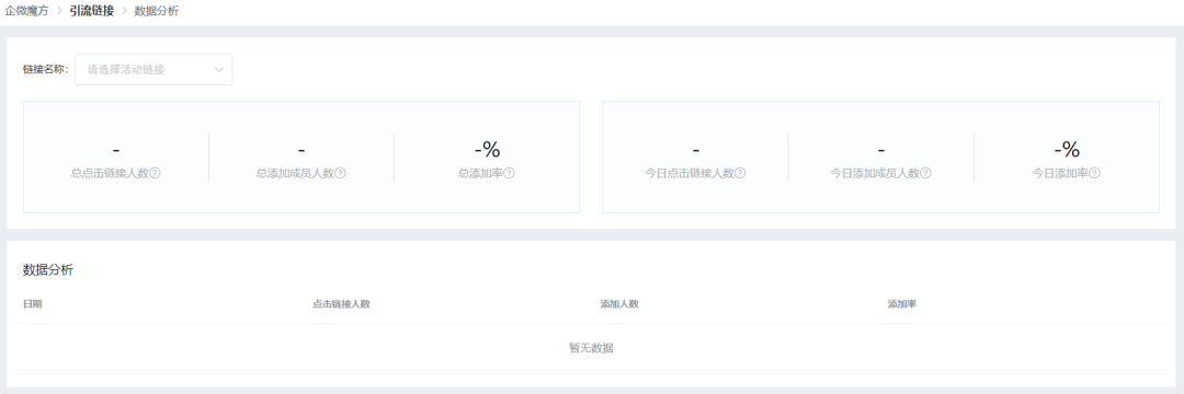 可查看每个引流链接的点击人数、成功添加人数及添加率,为引流优化提供数据支持。